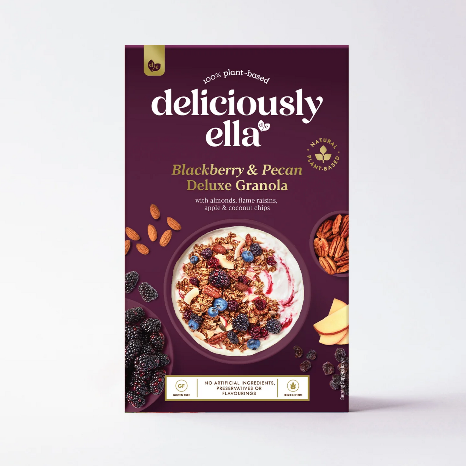 Gluten Free Oats (62.9%), Date Syrup, Coconut Sugar, Flame Raisins (4%), Rapeseed Oil, Pecans (2.7%), Almonds (2.7%), Coconut Chips (2%), Sunflower Seeds, Dried Apple (1.5%), Pumpkin Seeds, Freeze Dried Wild Blackberries (1%), Cinnamon (Cassia).