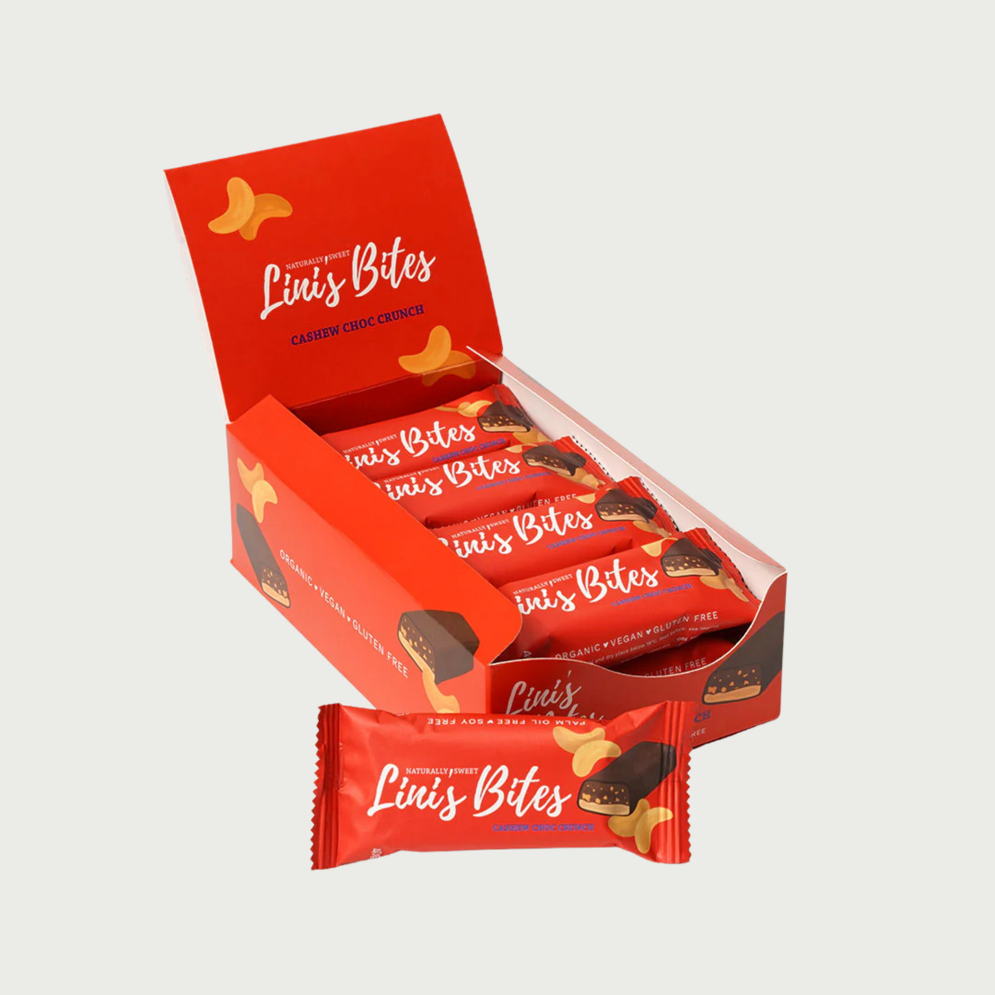 Dates* (31%), gluten-free oat flakes*, CASHEWS* (15%), dark chocolate* (cocoa mass*, coconut blossom sugar*, cocoa butter*) (13%), rice syrup*, cocoa paste*, coconut oil*, cocoa nibs* (2%), sea salt.