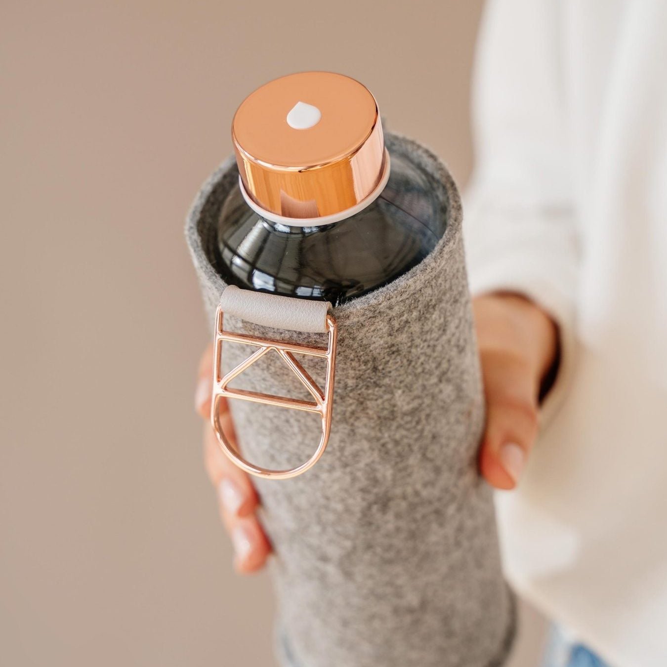 A firm and durable glass bottle embraced by a soft felt cover. This unusual combination not only makes the bottle more durable, but more rebellious and unconventional.