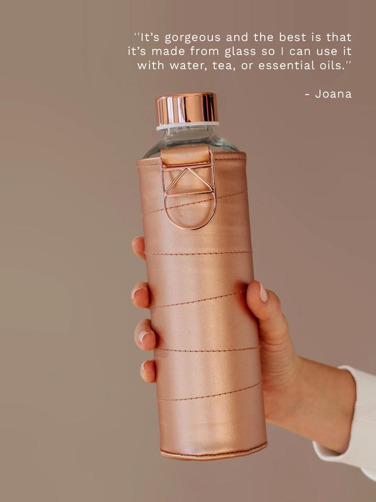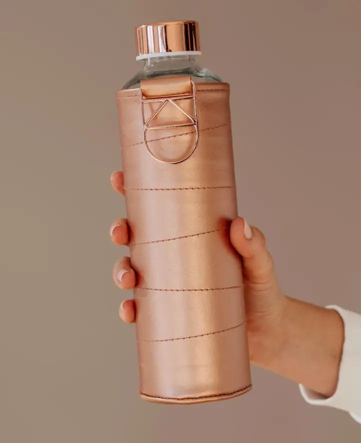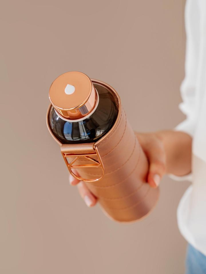 The MISMATCH bottle was designed to resemble the perfect harmony of almost unimaginable mismatched materials. A firm and durable glass bottle embraced by a faux leather cover combined with its metallic holder which gives it a special shine and touch of style. Made in EUROPE.