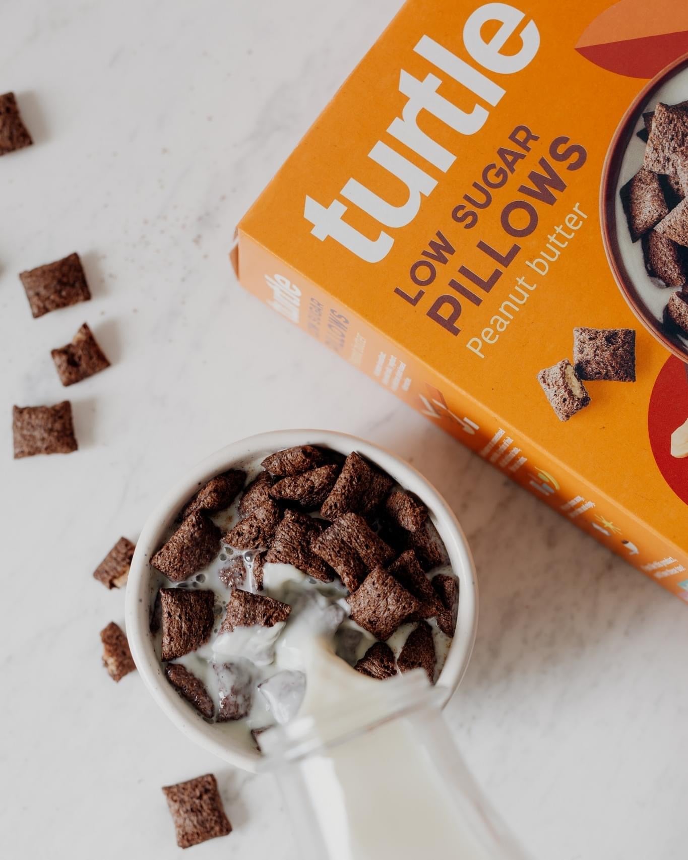 The rich flavors of cocoa and peanuts are generous and indulgent. Turtle Low Sugar Pillows Peanut Butter contain very little sugar to start a day without consuming too much sugar.