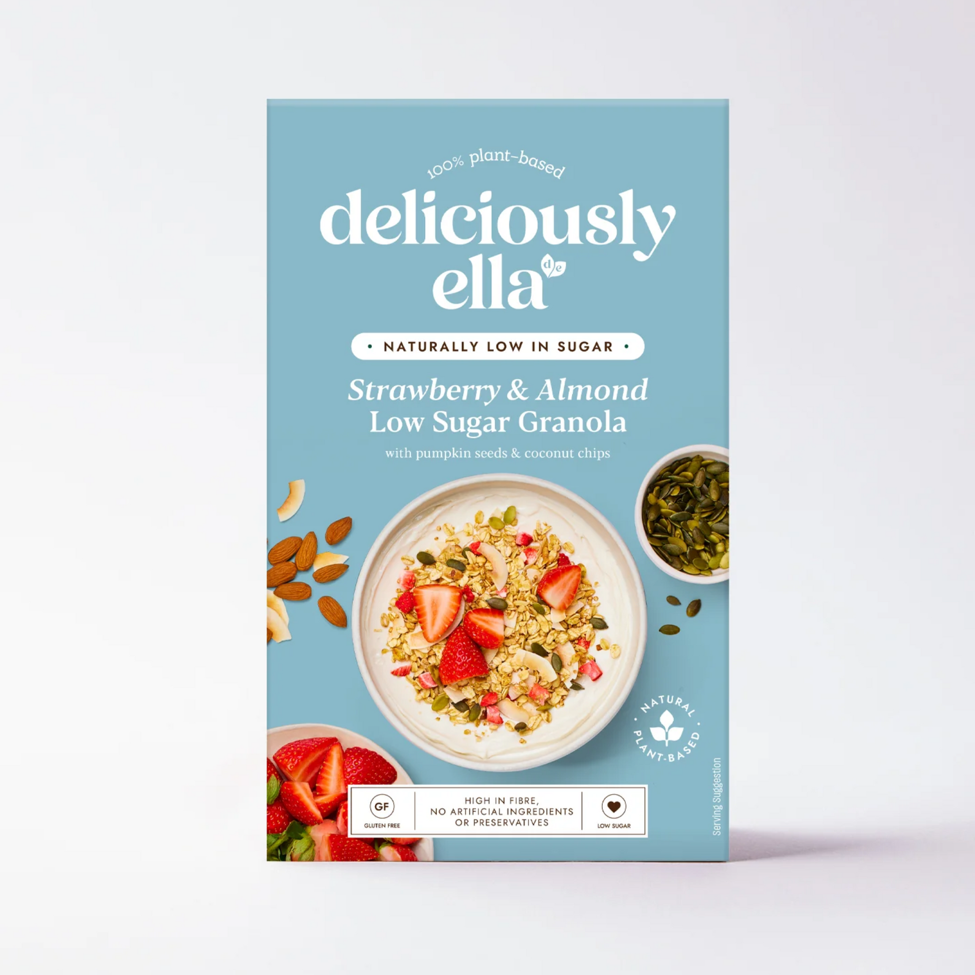 Naturally low in sugar, high in fibre, our Strawberry & Almond Granola is mixed with roasted almond nibs, cashews, toasted coconut chips and pumpkin seeds for a satisfying crunchy breakfast. 380g.