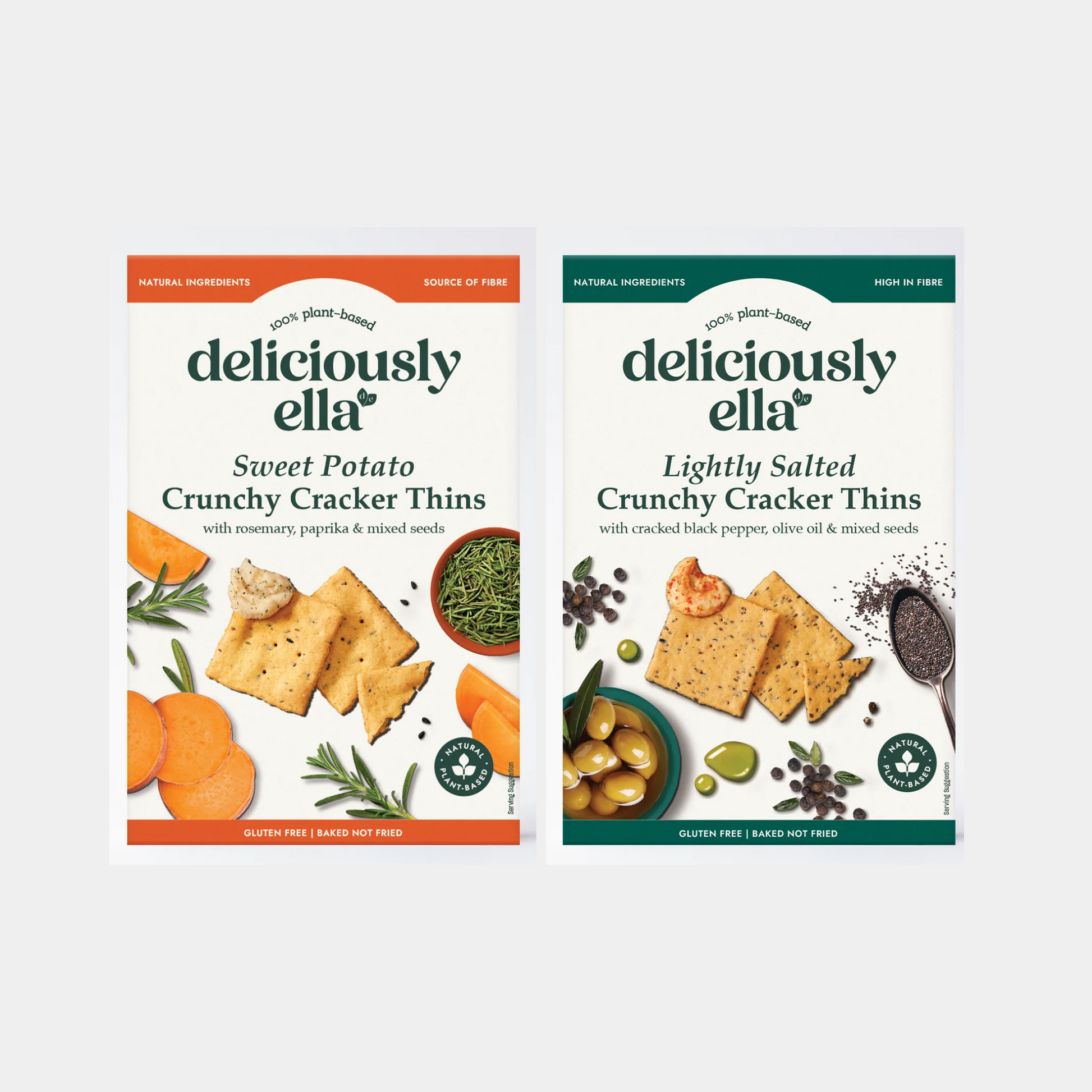 Sweet potato crunchy crackers: Rice Flour, Cassava Flour, Sweet Potato Flour, Mixed Seeds (11%) (Chia (Salvia Hispanica), Quinoa, Poppy), Potato Flour, Brown Rice Syrup, Wholegrain Rice Flour, Canola/Rapeseed Oil, Sea Salt (3%), Olive Oil (1%), Black Pepper (1%), Paprika.
